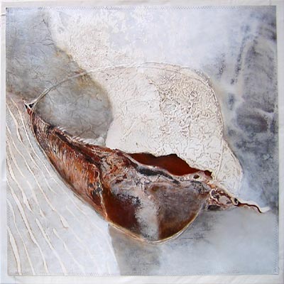 Graines de Silence 1 73 x 73 cm Acrylique, et techniques mixtes, sur toile papier cousue sur toile tendue