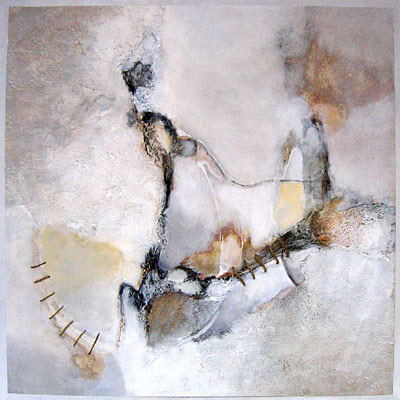 Graines de Silence 10 73 x 73 cm Acrylique, et techniques mixtes, sur toile papier cousue sur toile tendue