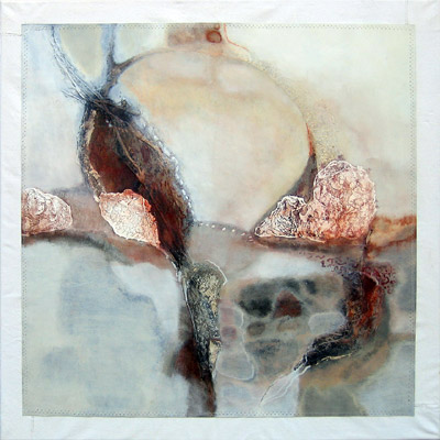 Graines de Silence 6 73 x 73 cm Acrylique, et techniques mixtes, sur toile papier cousue sur toile tendue